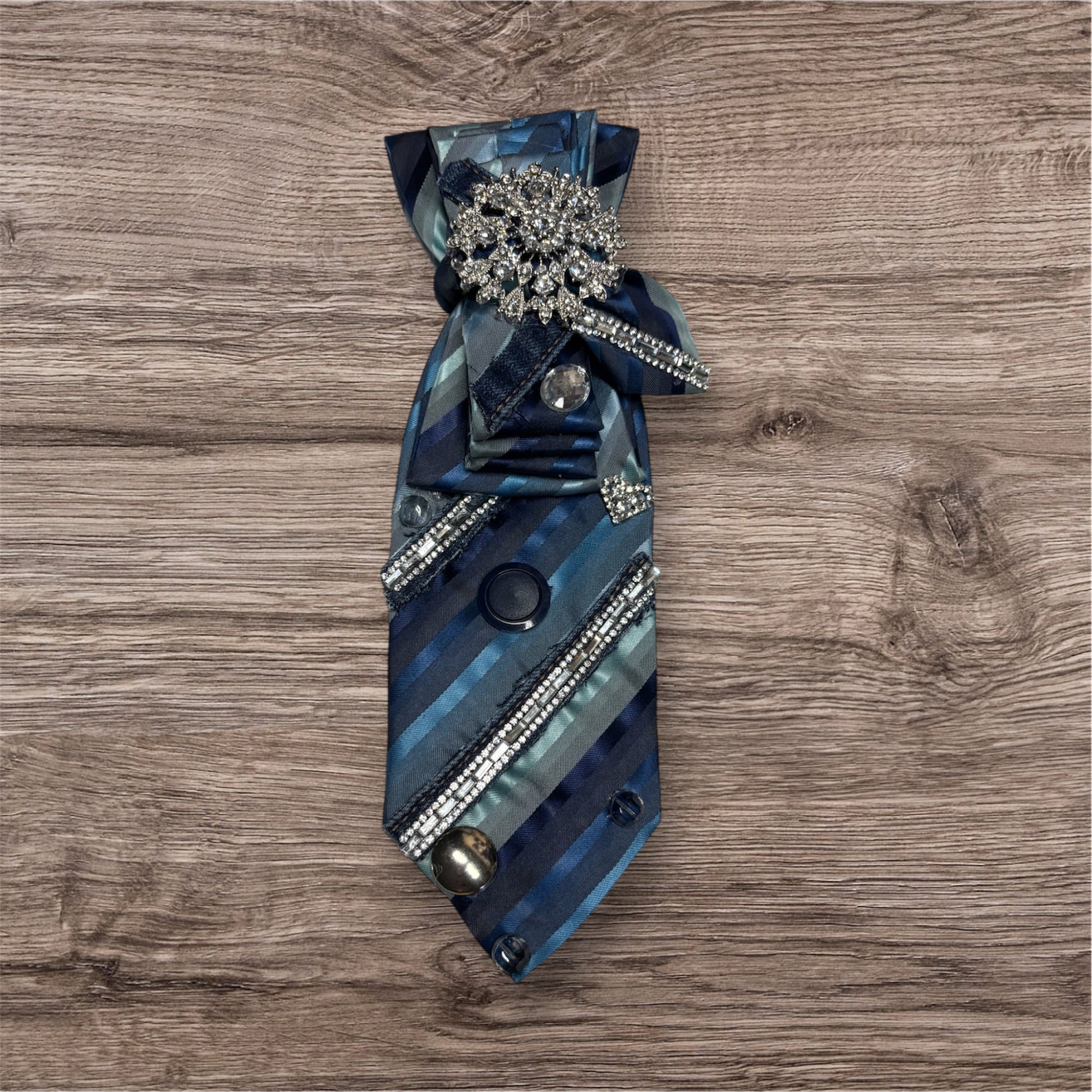 Custom Lavalliere with multiple shades of blue base. Blue jean accents embellished pearls and diamond jewels.
