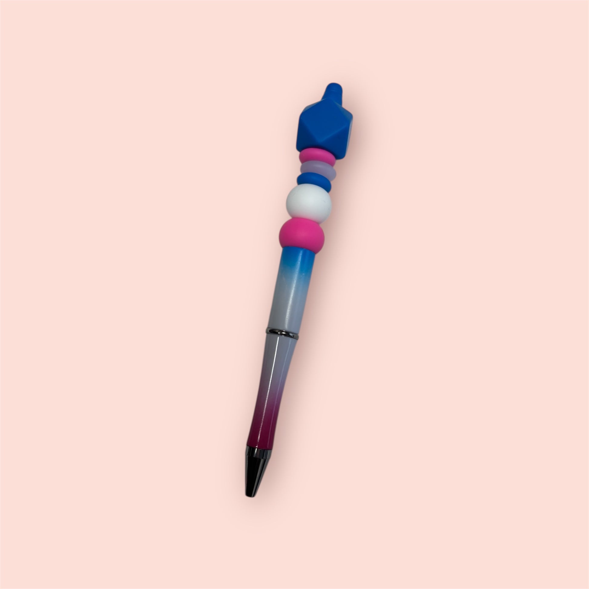 Blue/white/pink ombré base with blue, white and pink silicone beads
