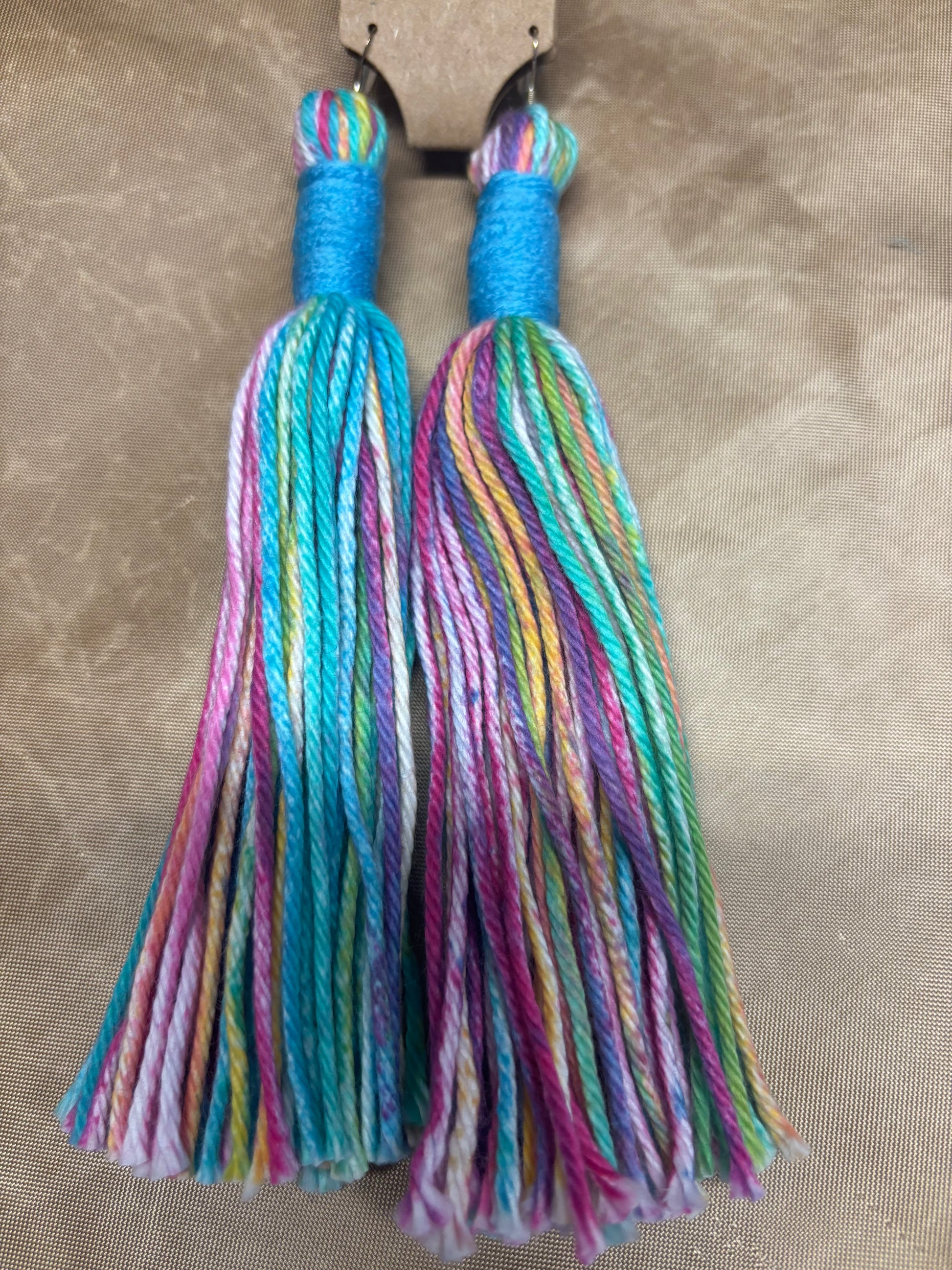 Experience the vibrance of the rainbow with Cindi Lauper. These lightweight earrings features beautifully soft colors with a pop of turquoise that will add a touch of playfulness to any outfit. Perfect for any season, wrap yourself in style and comfort with this versatile accessory.