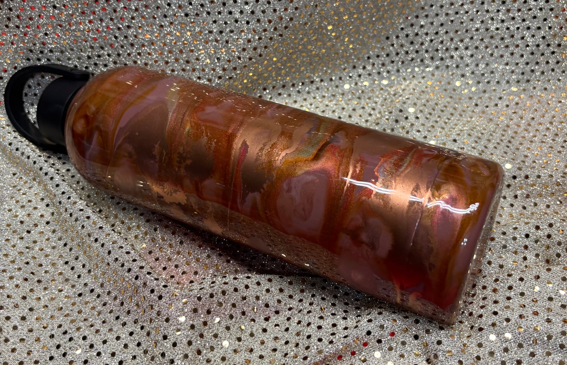 25 ounce(750 ml) stainless steel water bottle. Keep yourself hydrated when you use this stylish Stainless Steel Water Bottle. This handy water bottle has a slender body. There is a silicone handle connected to the cap that allows you to carry this bottle comfortably. You can always customize it by adding a name, decal or phrase. Customization will add a 2-week turnaround.