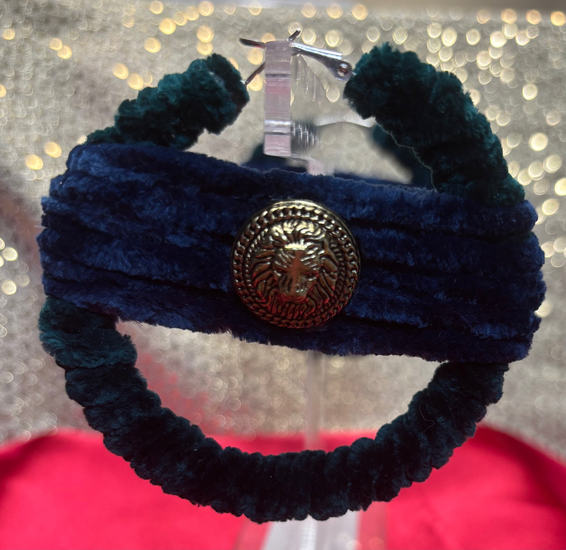 A beautiful designed hoop with hunter and navy velvet, adorned with a lion head piece.  One of Kind, part of the Nisi Collection!