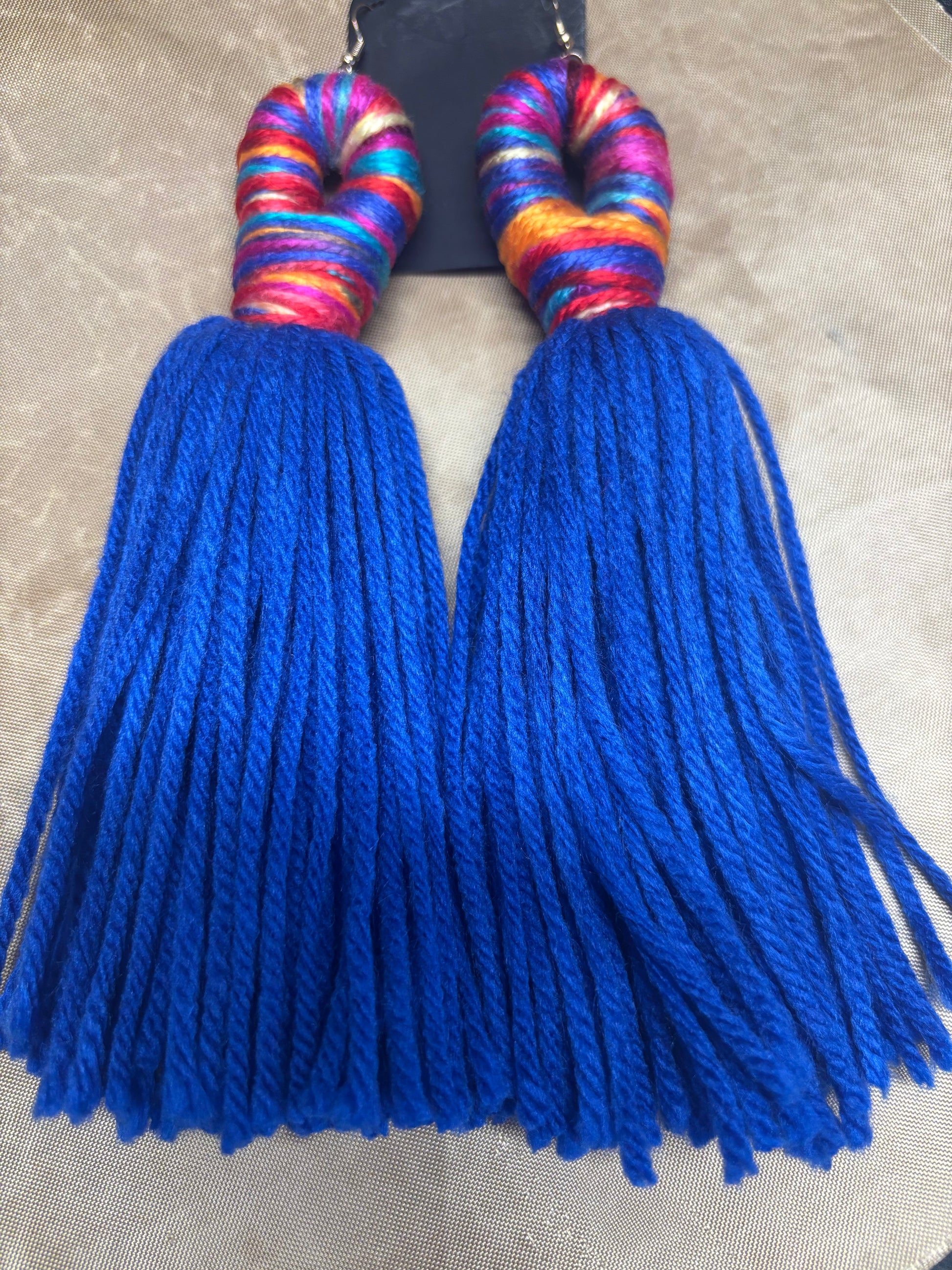 Blissful beautiful earrings, a unique addition to your jewelry collection. Made with royal blue tassels and bold rainbow color accents, these earrings are sure to make a statement. Plus, their light weight design ensures comfort and style all day long. Elevate any outfit with these eye-catching beauties.